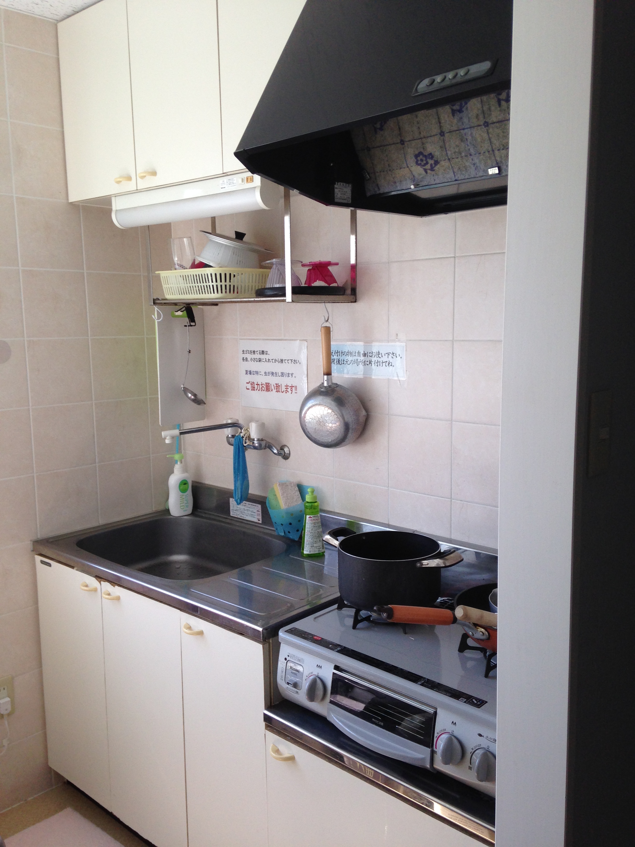 - 共同フロアには、男女別のトイレ及びシャワールーム。簡単な料理ができる給湯室。そして、パソコン。